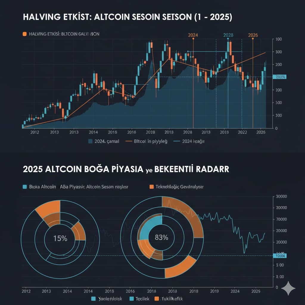 Kripto para piyasasının tarihsel döngüleri incelendiğinde, Bitcoin halving (yarılanma) olaylarının piyasa üzerinde önemli bir katalizör etkisi yarattığı gözlemlenmektedir. Bitcoin’in blok ödülünün yarıya indiği bu olaylar, genellikle Bitcoin fiyatında bir artışı tetikler ve bu artış, belirli bir gecikmeyle birlikte altcoin piyasasına da yansır. Bir önceki halving olayından sonra altcoinlerin zirveye ulaştığı dönemler, çoğunlukla halving’i takip eden 12 ila 18 ay sonrasına denk gelmiştir.